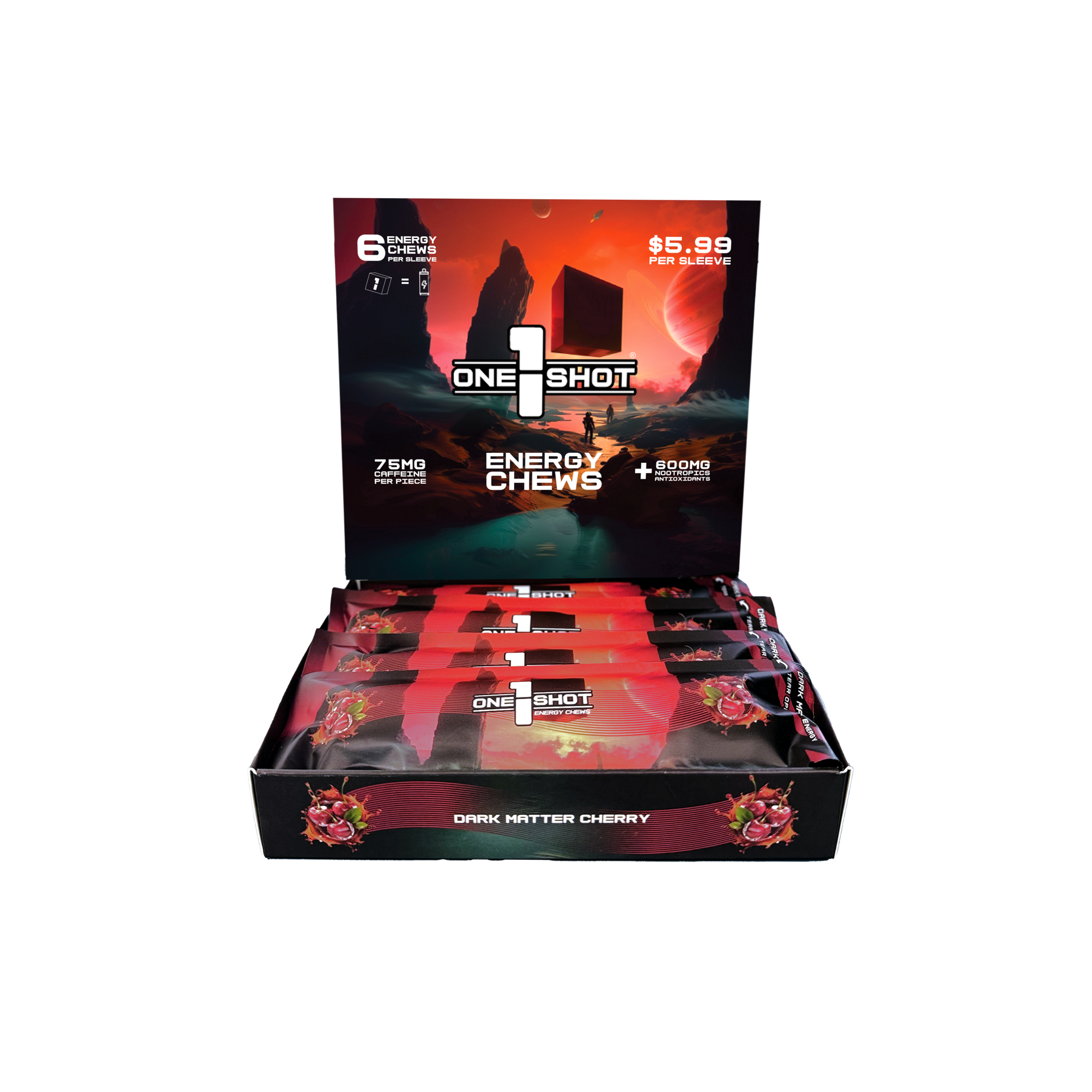 1 Shot® Dark Matter Cherry Energy Chews – Retail Display Box (8 Sellable Sleeves) - 10 Boxes/Case